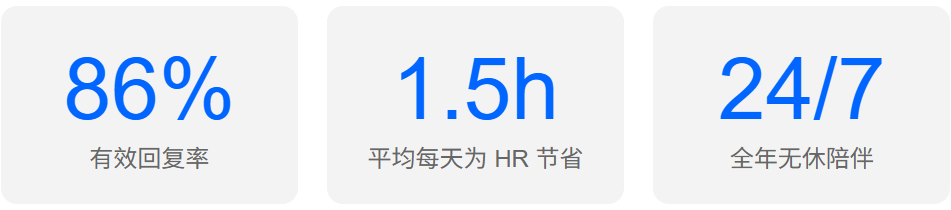自动回复候选人和员工提出的各类问题,第一时间给出答案,这样 HR 无需花大量精力重复解答,可显著改善用户体验,避免人才无感流失