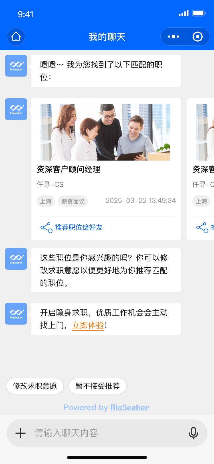 候选人有疑问,却不知找谁求助?HR 面对雷同的问题,必须反复回答?仟寻招聘智能体可为您破局!我们运用大模型技术和深度学习算法,通过流畅拟真的对话交互,为候选人和企业员工提供智能服务。对于各类咨询和提问,招聘智能体能够即时响应,自动答复,开展个性化互动,提高招聘和人事管理效率。