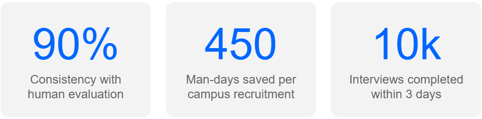 Mars handles tens of thousands of candidates during campus recruitment. Together, we have developed and iteratively refined an interview solution that automates and streamlines recruitment workflows, shortens the online application and initial interview cycles, and reduces costs.