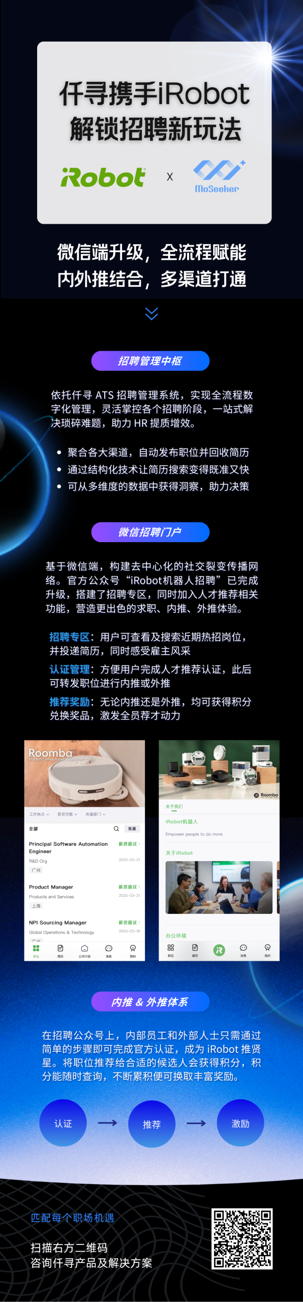 仟寻 MoSeeker 与 iRobot 合作推动招聘数字化升级