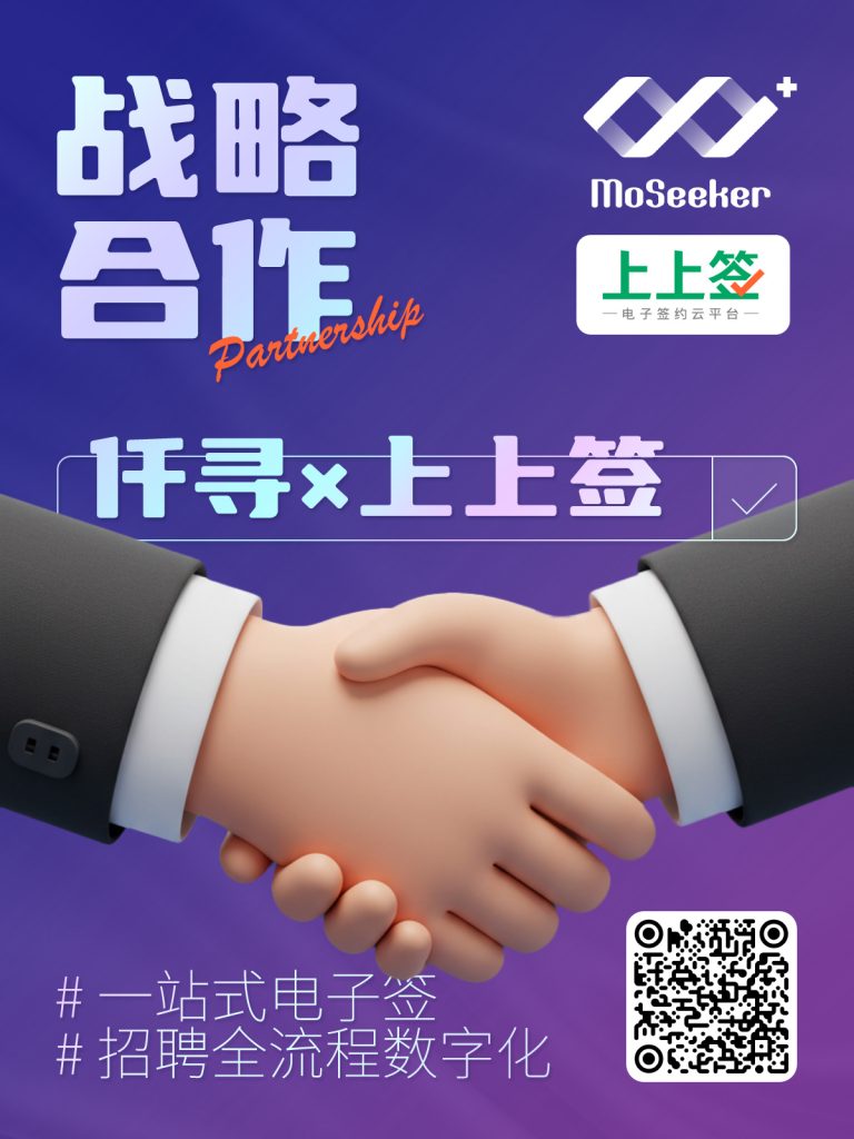 中国招聘数字化领军企业仟寻 MoSeeker 与电子签约云平台领跑者上上签达成战略合作,围绕招聘场景展开深度协同,实现合同在线签署及合同全生命周期智慧管理。仟寻核心产品将集成上上签电子签约,为用人组织增强签约的效率与安全性,同时给候选人带来即时、便捷、无断点的应聘及入职体验。