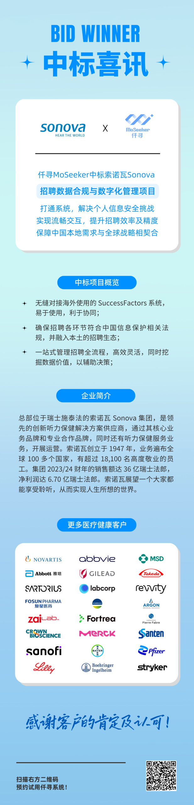 中标索诺瓦 Sonova 招聘数据合规与数字化管理项目!