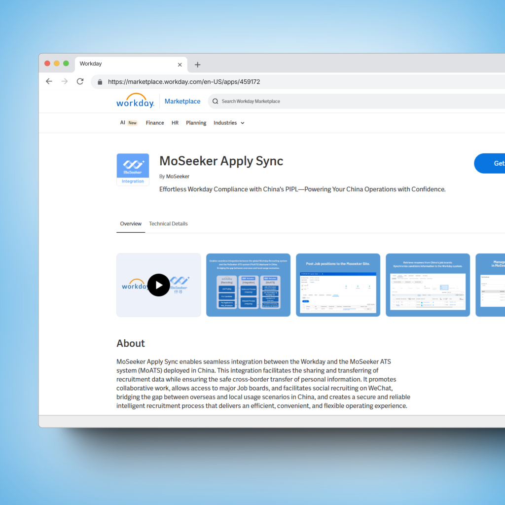 “The partnership between MoSeeker and Workday began in 2021. We are the first Workday partner to certify an integration in the recruitment sector in mainland China,” said Xiangdao Wang, Founder and CEO, MoSeeker. “Multinational companies often encounter challenges when using overseas recruitment systems in China, leading to issues of mismatch. Our integration solution addresses these pain points by addressing alignment with the local recruitment ecosystem in China in terms of data compliance, processes, user preferences, product features, and system integration, ultimately creating an exceptional experience for Chinese candidates.”